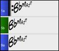 MicroChords are stacked vertically on the Chord Sheet. If there is also a main chord at the same beat, it will display in gray.
