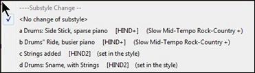 MicroChords: You can enter up to 4 chords on a beat by typing chords separated by a comma. For example, you could type C,F for 8th notes, C,F,D or C,,D for triplets, or C,F,G,Am or C,F,,Am for 16th notes. The [MicroChords] button opens the Set MicroChords dialog, which allows you to exclude some tracks from playing the MicroChords and select other options.